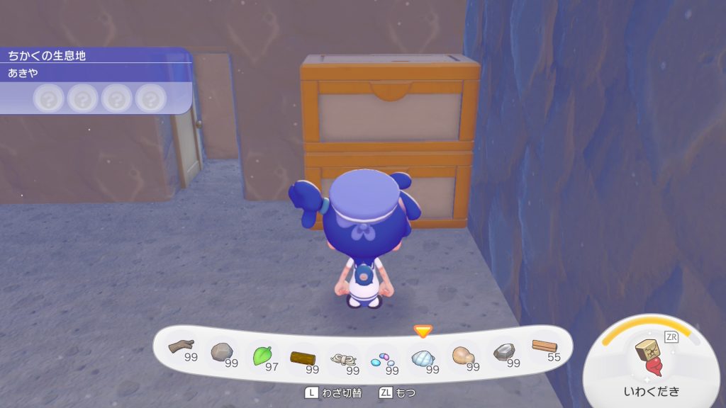 地下空間を作ったら物を収納するための「ビッグしゅうのうボックス」を作成します。「ビッグしゅうのうボックス」だとたくさん物を収納できますし、縦に積むことが出来るので場所を取りません。大量に「ビッグしゅうのうボックス」を作成するには大量のポケメタルが必要になります。フワンテに「カイリューのぬいぐるみ」を見せて連れて行ってもらえるゆめしまでポケメタルのかけらを手に入れてください。すると炎タイプのポケモンにようこうろでポケメタルを作成してもらえます。